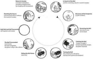 The Zen parable of “Finding the Ox” symbolises the seeker’s journey towards enlightenment – a process of remembering one’s true nature.