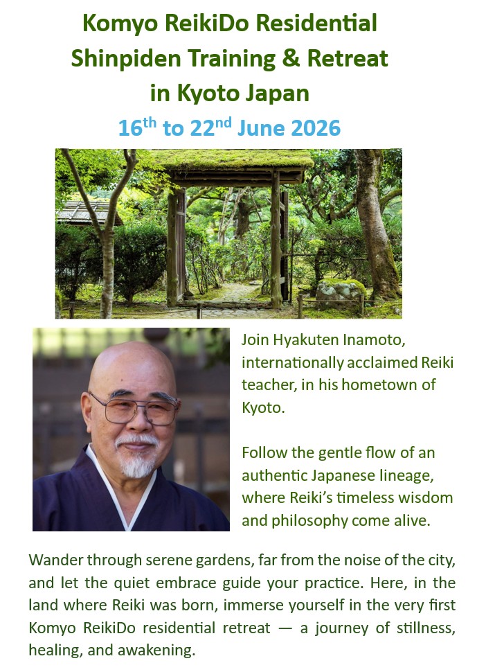 An exceptional opportunity to study with Hyakuten Inamoto, Founder of Komyo ReikiDo, north of Kyoto near the base of Mt. Hiei.