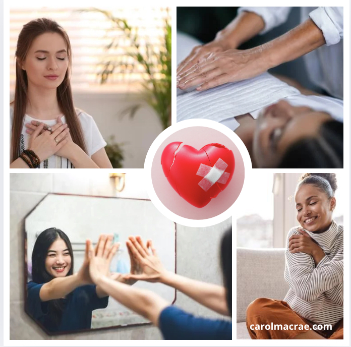 Simply place your hands over your heart and breathe love into yourself. This act of self-kindness is powerful medicine. Say to yoursel “I am safe, I am whole, I am loved.”
